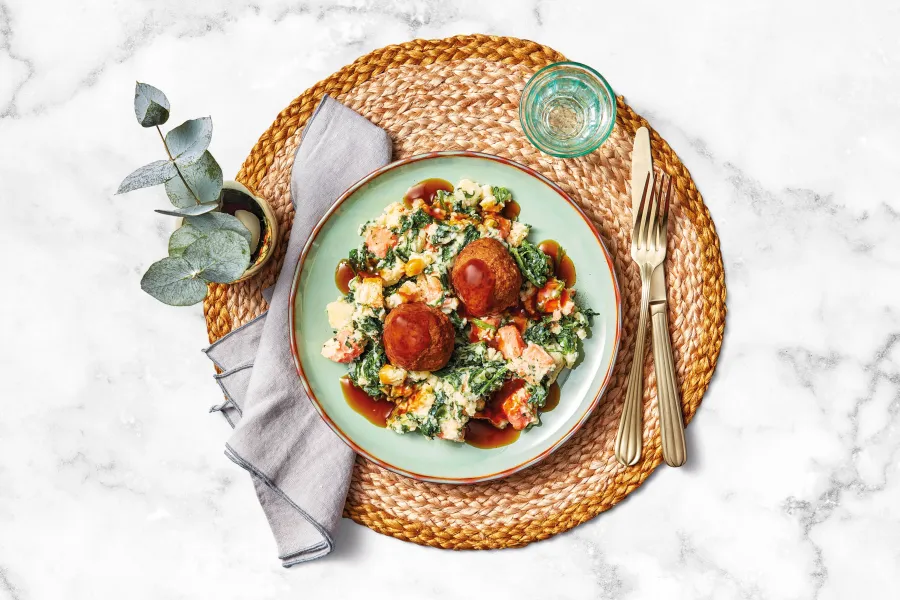 Maaltijd Thuis kok Jeroen legt uit: "We beginnen met experimenteren in de keuken. We proberen verschillende ingrediënten en smaakcombinaties uit om tot een perfect recept te komen. Dit is een fase waarin we niet alleen kijken naar wat de trends op de markt zijn en waar behoefte aan is, maar waarin we ook gewoon onze creativiteit de vrije loop laten en nieuwe ideeën verkennen."