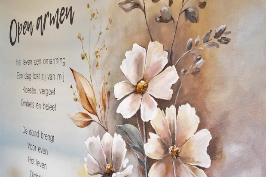 Een gedicht aan de muur van de begin maart geopende ViVa! Zorggroep hospice-unit Westerhof van de Heemskerkse woonzorglocatie Meerstate, laat tal van dit soort verhalen mooi samenkomen: ’Het leven een omarming. Een dag lost zij van mij. Koester, vergeef. Omhels en beleef. De dood brengt. Voor even. Het leven. Dichtbij.’
