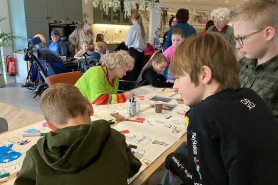 Janette de Bruin is van de activiteitenbegeleiding van Meerstate. „Dit is een ontzettend leuke toevoeging. We doen al heel veel met onze bewoners, maar samen met kinderen iets doen vinden bewoners heel erg leuk. Sommige actief, anderen kunnen door omstandigheden niet tekenen, maar vinden het wel fijn om er aan tafel bij te zitten. Trouwens, wij als begeleiders worden hier ook heel erg blij van.”
