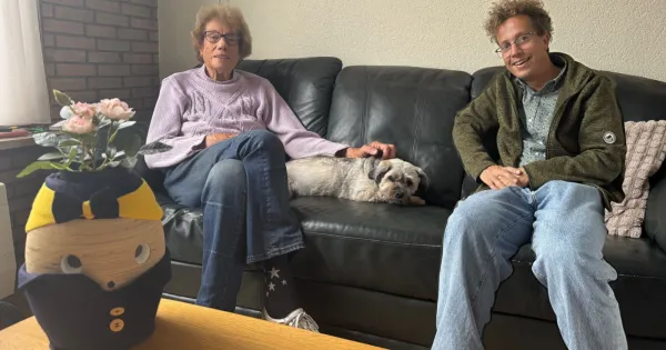 De 97-jarige mevrouw De Bruijn woont nog altijd zelfstandig in haar huis in IJmuiden, samen met haar hondje Puk. Sinds kort krijgt ze hulp van een nieuwe huisgenoot: de dagstructuurrobot Tessa. “Ze zegt ’s morgens goedemorgen, vertelt hoe laat het is en ’s avonds wenst ze me welterusten,” vertelt mevrouw De Bruijn met een glimlach. “En ze vergeet nooit om me te herinneren aan mijn medicijnen. Heel handig, hoor!”